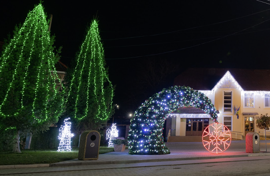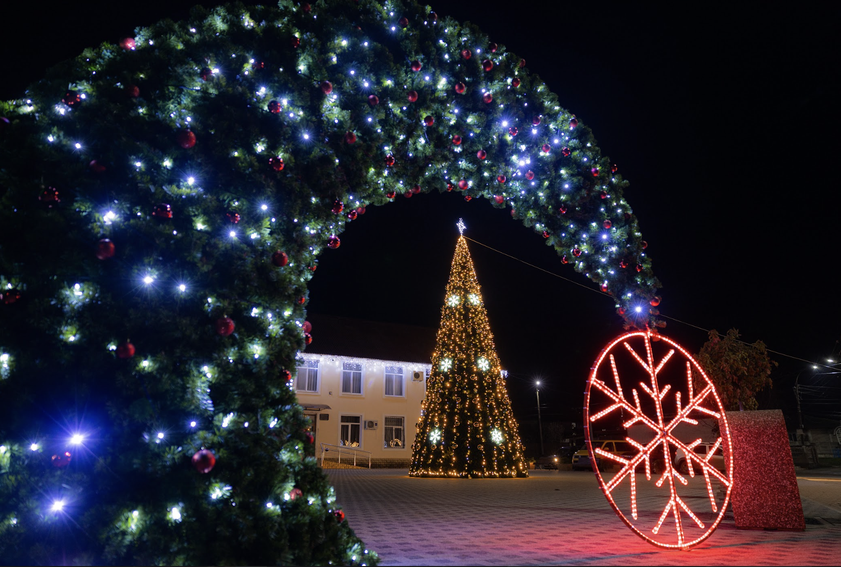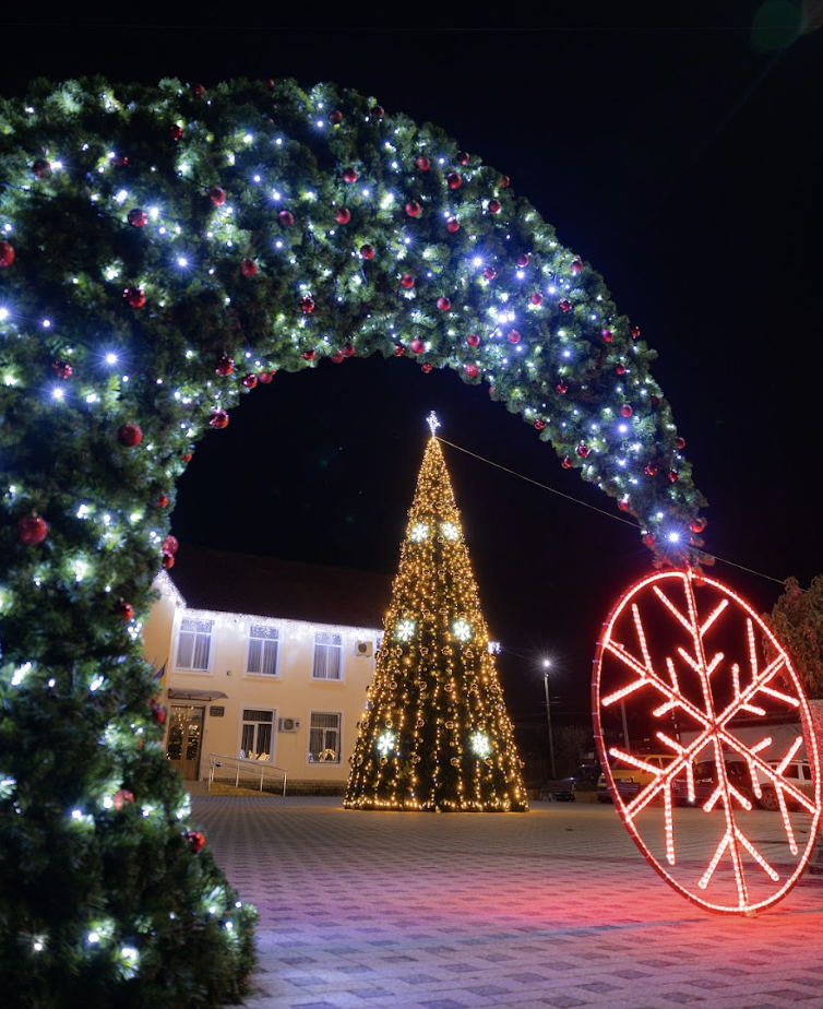 Arcă festivă 3D sub formă de brad, confecționată din carcasă metalică trainică, decorată cu beteală de brad Premium, ghirlandă fir cu sclipici pentru exterior și jucării pentru brad. Compoziția se încheie cu un fulg gigant 2D, confecționat din metal și decorat cu tub LED roșu. Perfectă pentru amplasare în scuarul primăriei, casei de cultură, în parc, alee sau la loc de cinste în centrul localității în perioada sărbătorilor de iarnă. |