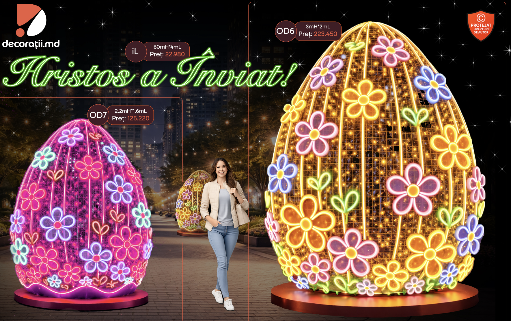 Confectie urbană decorativã Ou Pascal. Profile metalice decorate cu ghirlandă fir ip65 în 2 culori. perfecta pentru decorarea aleelor . |